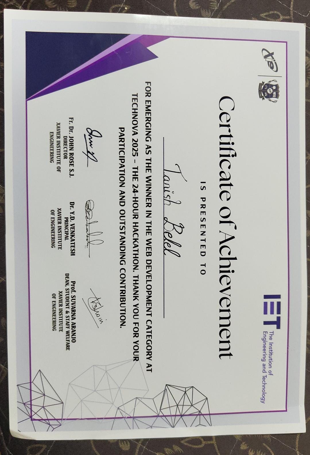 I'm Tanish Belel, a Web Developer and AIML enthusiast based in Mumbai,India . I build seamless, high-performance digital products that blend creativity with precision.